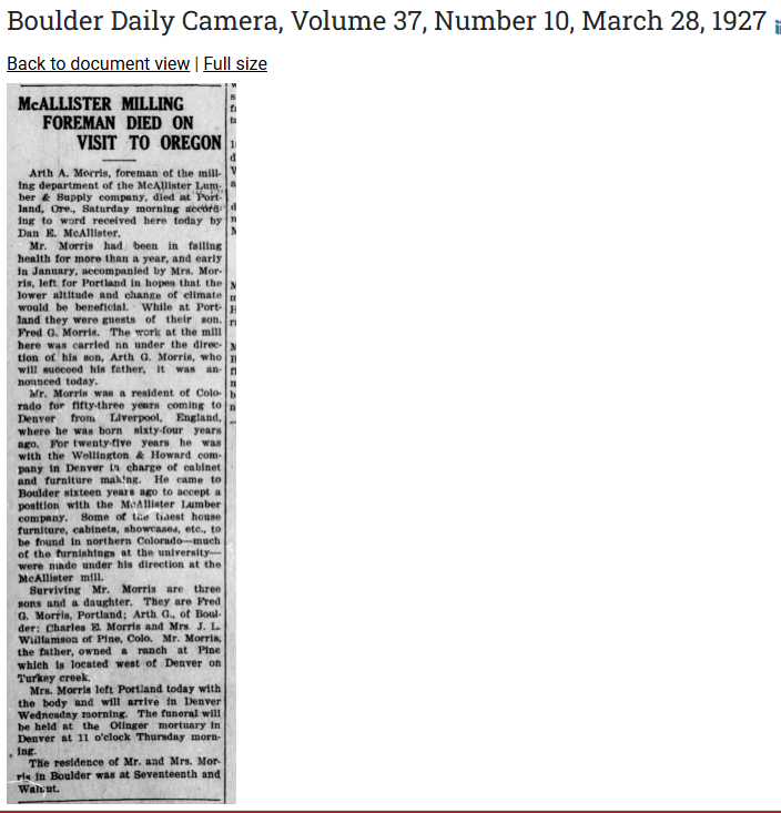 - In 1889 they married in Denver and built their family living in Denver and Boulder. Arthur worked for two esteemed cabinet and furniture companies – Wellington & Howard Company & McAllister Lumber Company.
