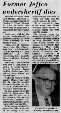 - Charles worked hard for his family. For 10 years he was a Road Supervisor and plowed snow for Jefferson County Road & Bridge. Then he served the Sherriff’s department as a patrolman, sergeant, lieutenant, captain and undersheriff for 23 years. In 1944 he served in the Army and was a WWII veteran.