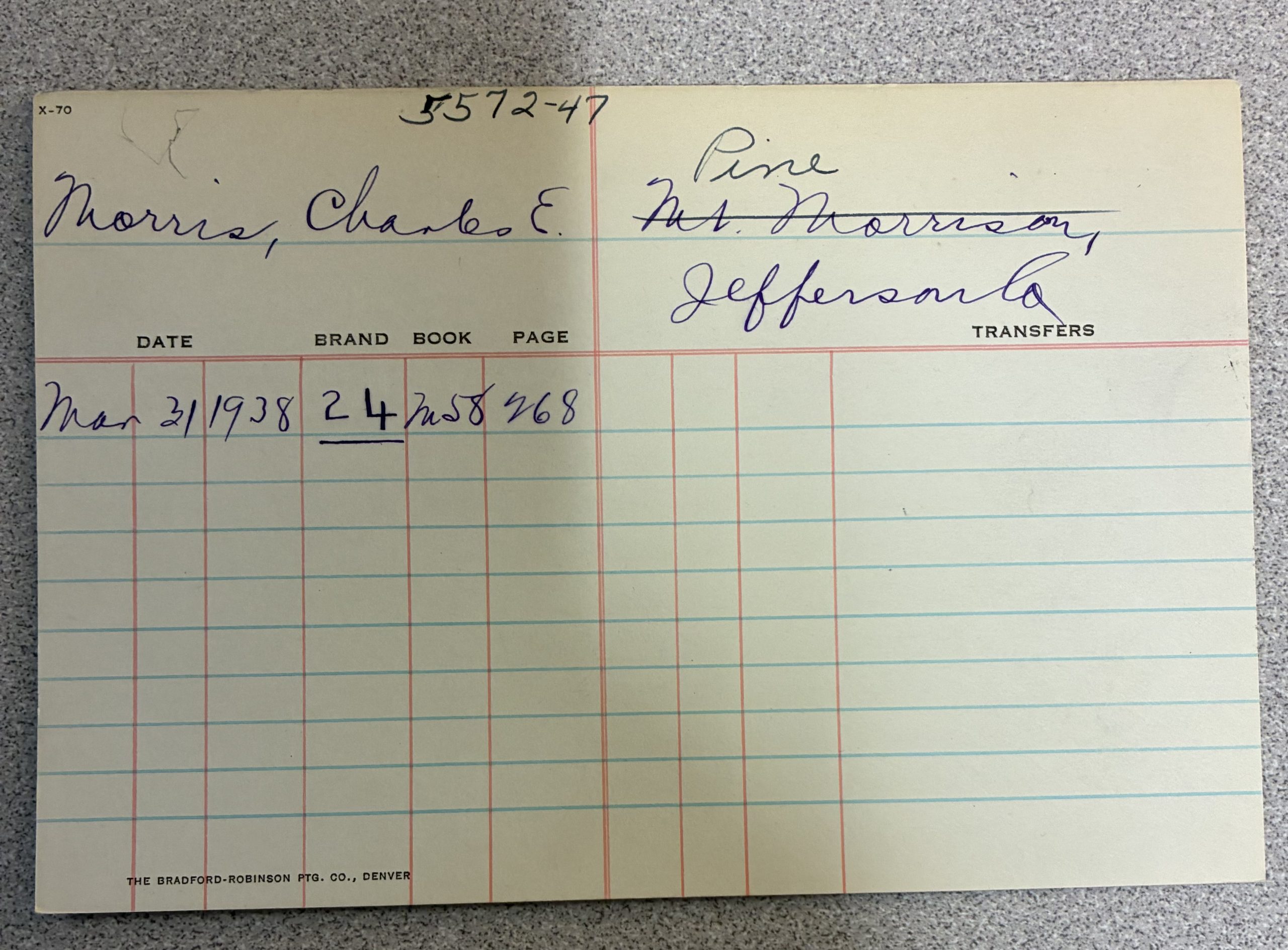 Originating from England, Scotland (George Frazer looks straight out of the Outlander series) and Germany, they ultimately settled in the Turkey Creek and Platte Canon areas. With their homesteads they became ranchers while also serving the community as stone masons, cabinet makers, road maintenance and law enforcement. The Two Bar Four brand from 1938 is still used by the family today and the seventh generation is still in the area calling Bailey home. We’re grateful for their stewardship of this local treasure.
